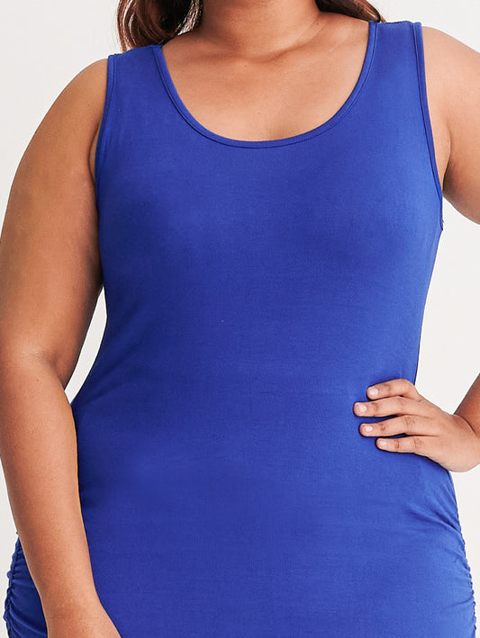 Side Ruched Sleeveless Tank Midi Dress